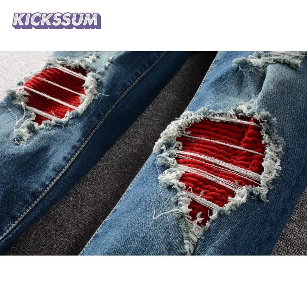 Amiri Design Rip Jeans Dark blue / Red