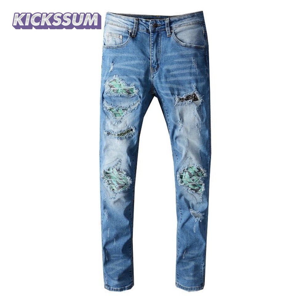 Amiri Design Rip Jeans Light Blue / Green