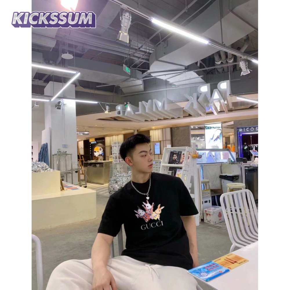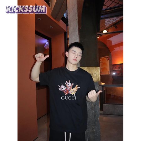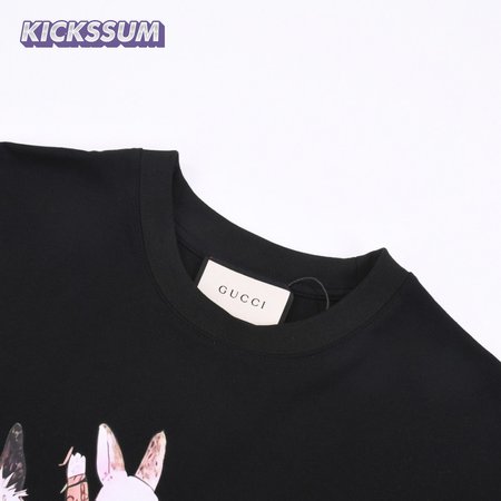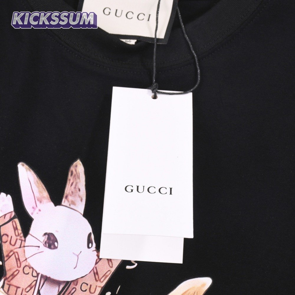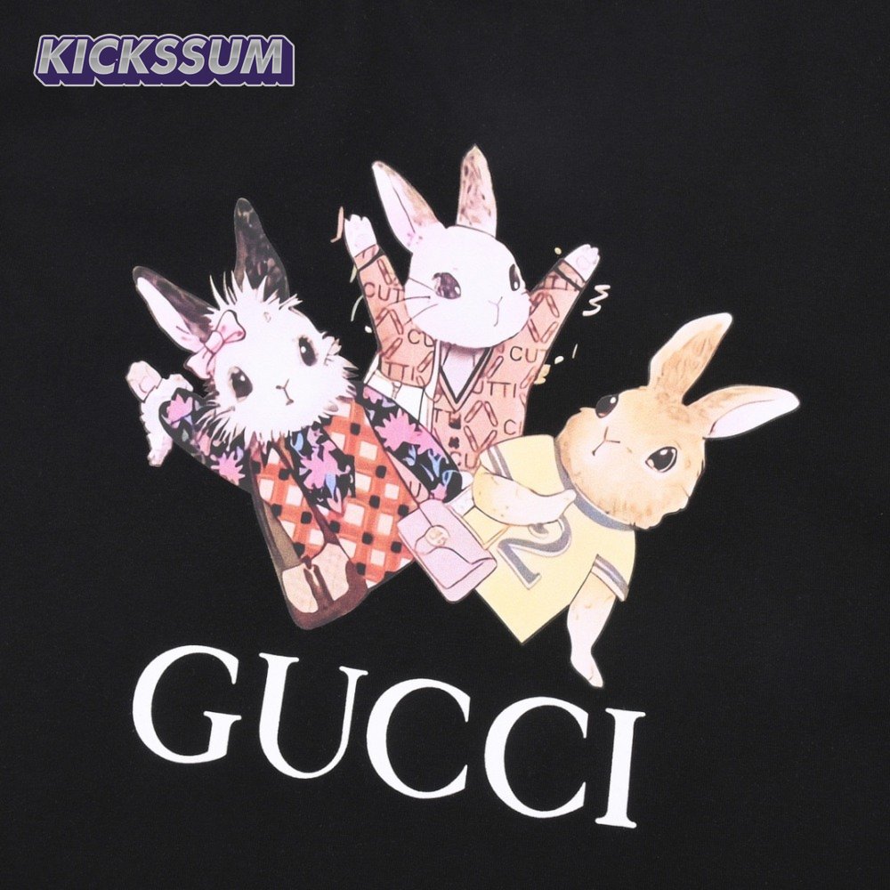 Gucci Rabbits Print Print Cotton T-Shirt Black