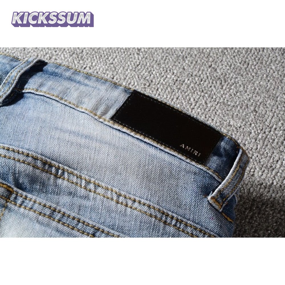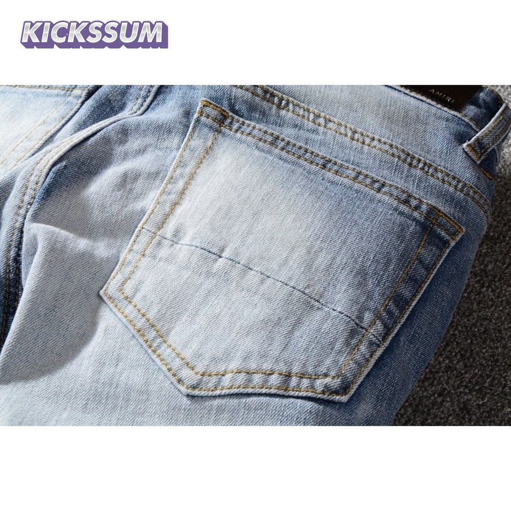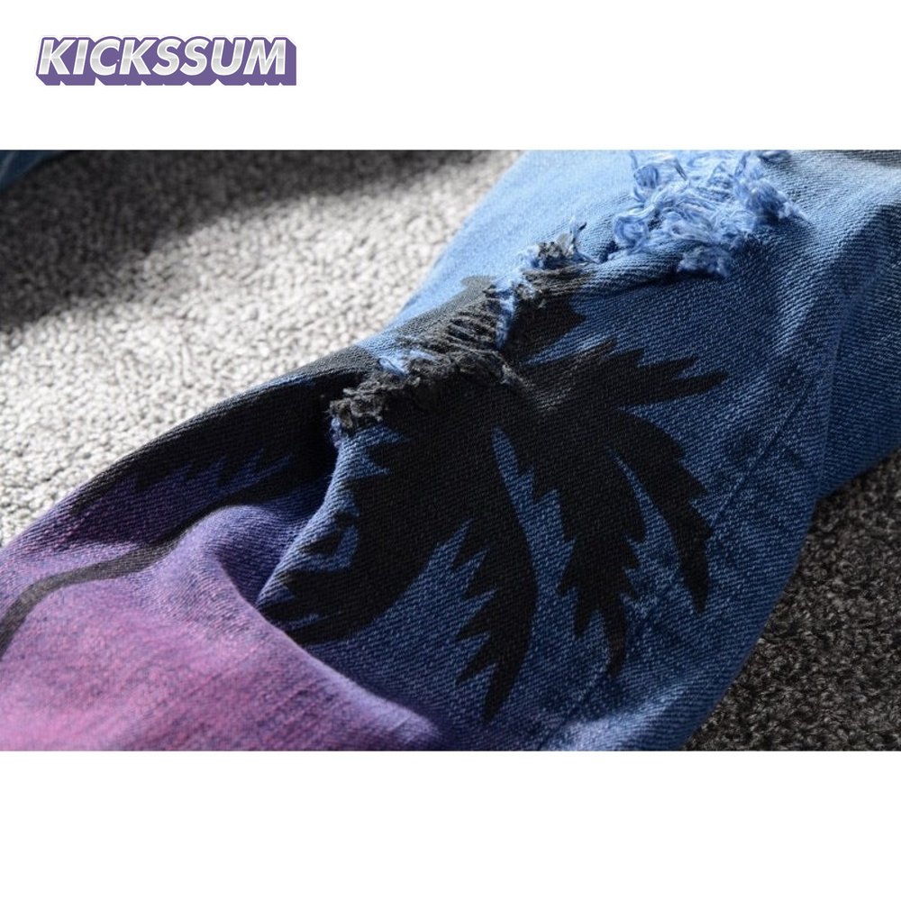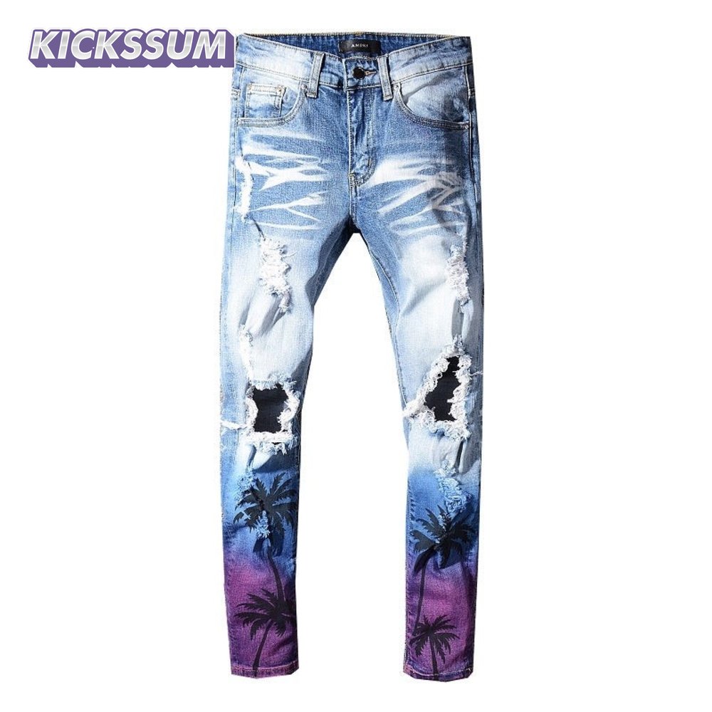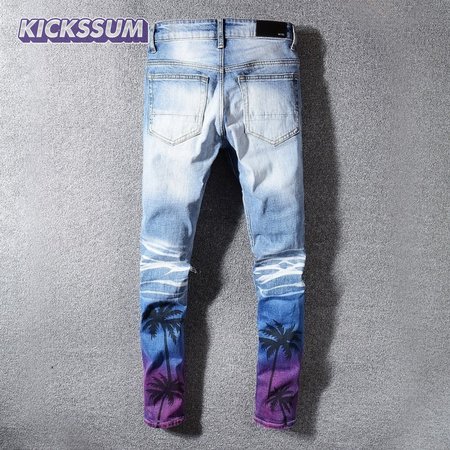 Amiri Palm Tree Jeans Light Blue/ White / Purple