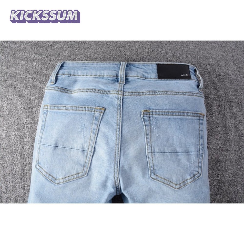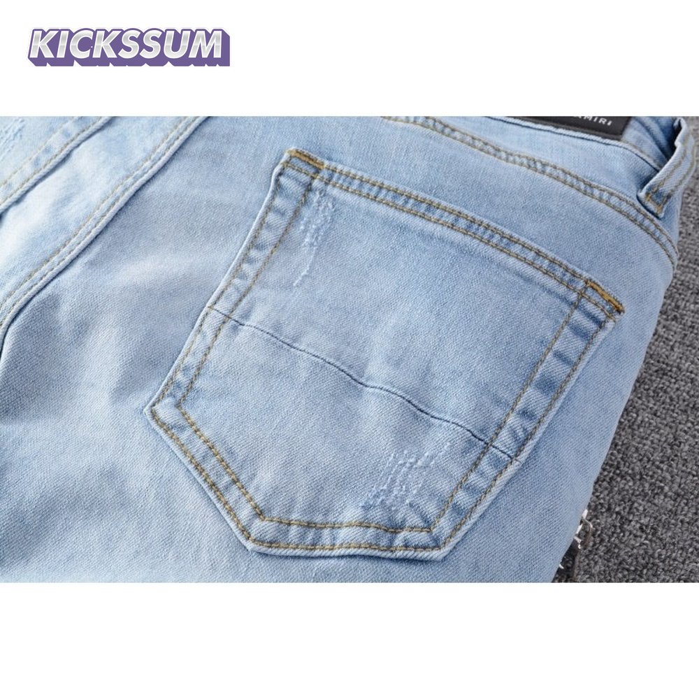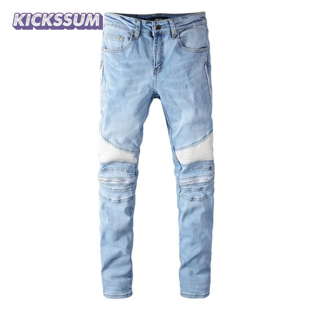 Amiri Zipper Jeans Light Blue / White