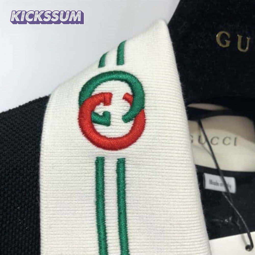 GUCCI COTTON POLO WITH WEB AND FELINE HEAD