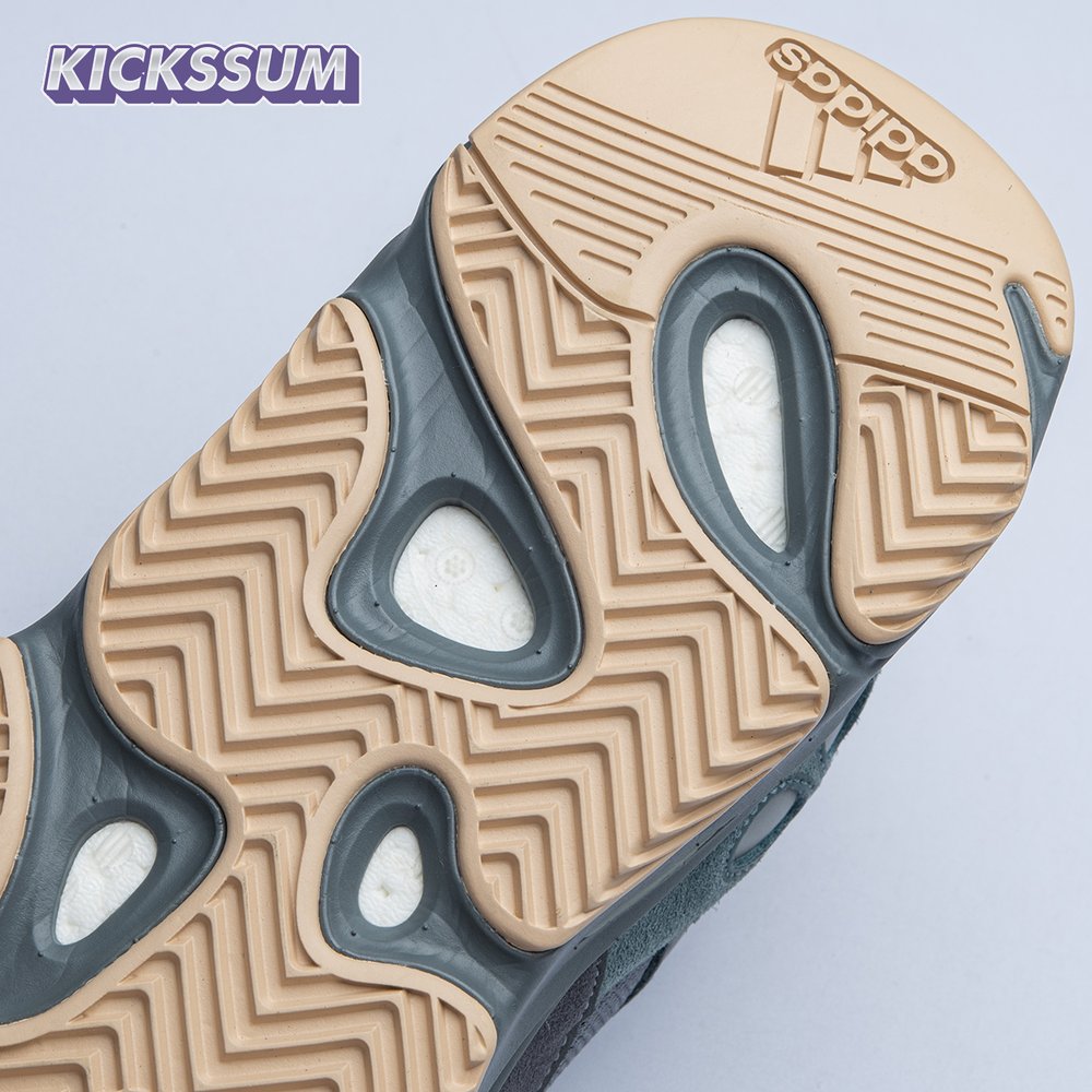 Kanye West's approach to the adidas Yeezy Boost 700 results in a future-forward sneaker with a deft balance of athletic influence and progressive design intent. Debuted in October 2019, this update has a mesh, leather and suede upper in a predominantly muted palette interrupted by a Teal Blue forefoot and vibrant laces for visual impact. Its exaggerated Boost-filled midsole and gum rubber outsole enhance support and traction.