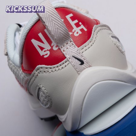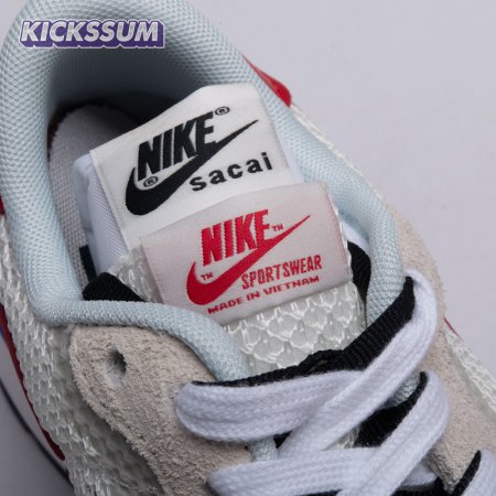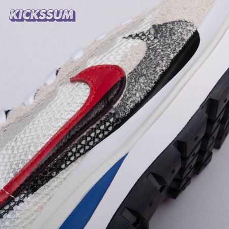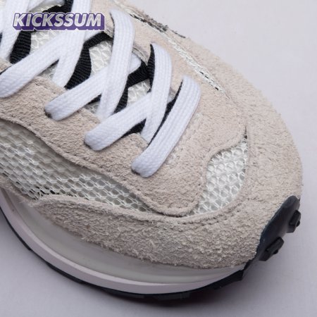 Made in partnership with the progressive Japanese fashion label, the Sacai x Nike VaporWaffle "Black White" repeats many of the design tropes introduced on the brands" LDV Waffle collaboration from 2019. They include doubled tongues, doubled Swooshes and a stacked midsole, updated here with split construction at the heel. Up top, open off-white mesh is fortified with tonal suede overlays and a red leather heel tab marked with dual Nike and Sacai branding.