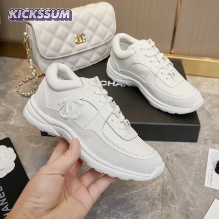 CHANEL LOW TOP TRAINER CC TRIPLE WHITE - CC4