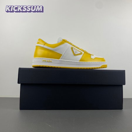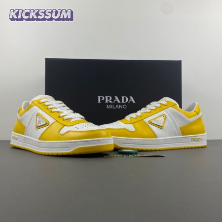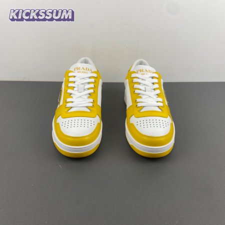 Prada Downtown Low Top Sneakers Leather White Yellow Sun