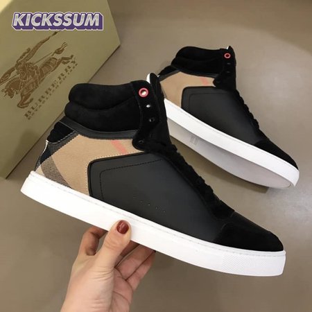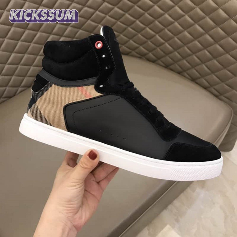 BURBERRY LEATHER AND HOUSE CHECK HI-TOP SNEAKERS - BBR28