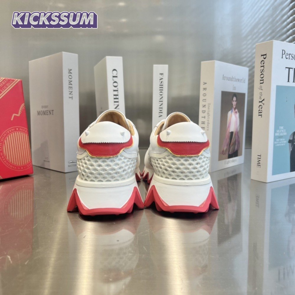 Christian Louboutin Black/White Leather Louis Orlato Spike Sneakers