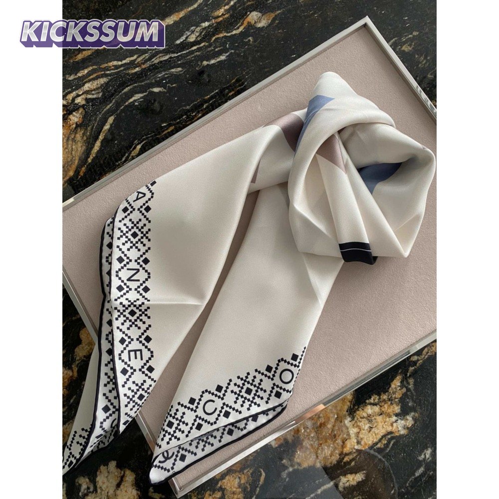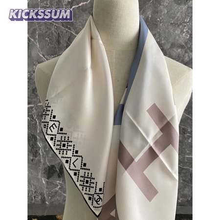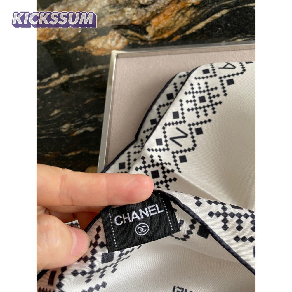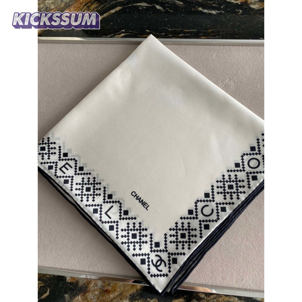 chanel silk scarf white