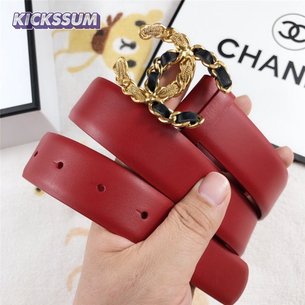 Chanel Leather Belt Buckle 30mm red
