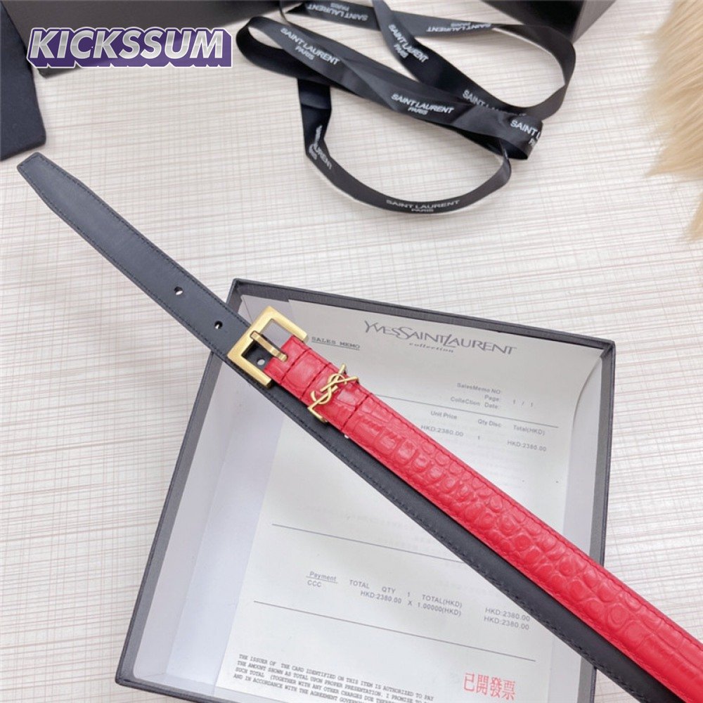 ysl crocodile grain top layer leather belt