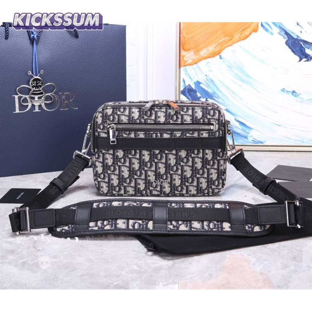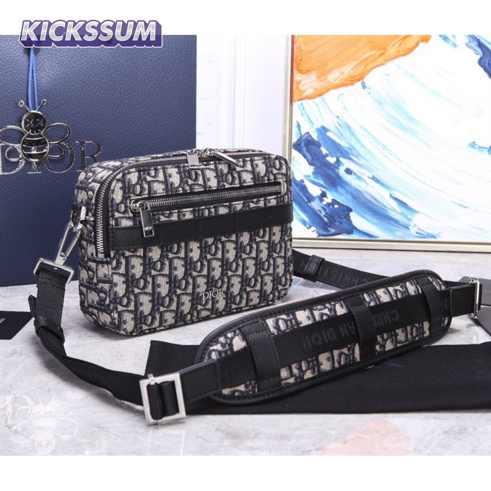 Safari Messenger Bag Beige and Black Dior Oblique Jacquard - DMB005