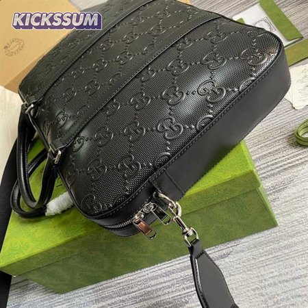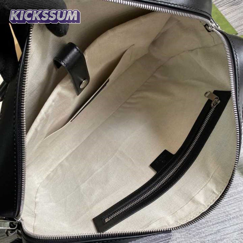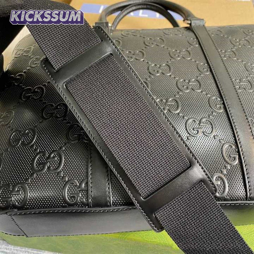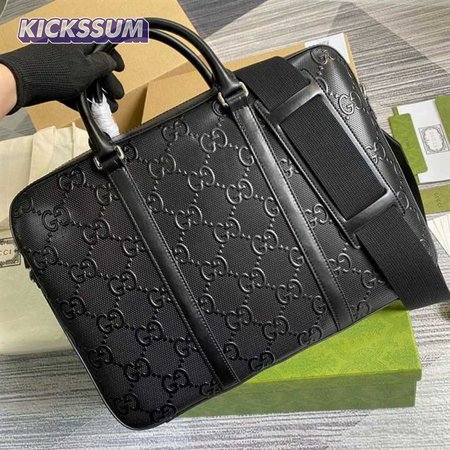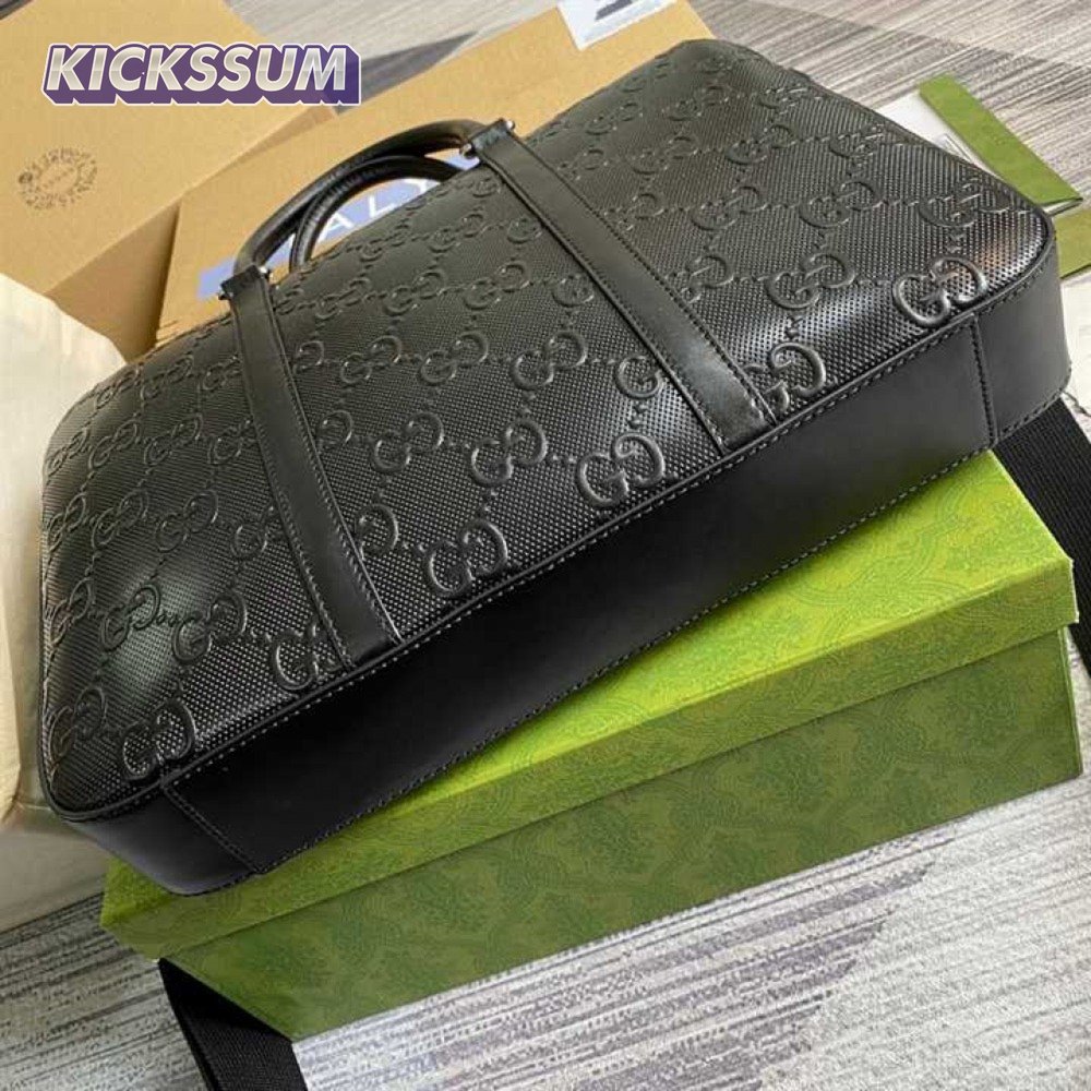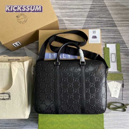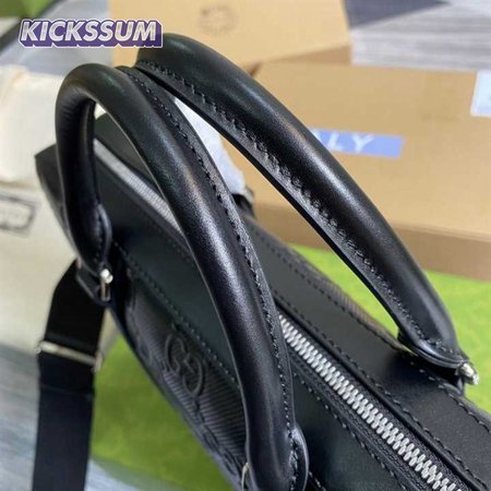 Gucci GG Embossed Briefcase Black Leather Cotton Linen Lining - GBC005
