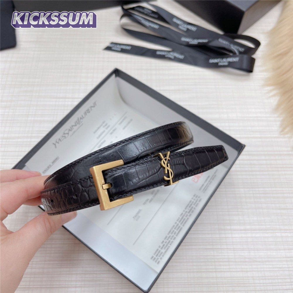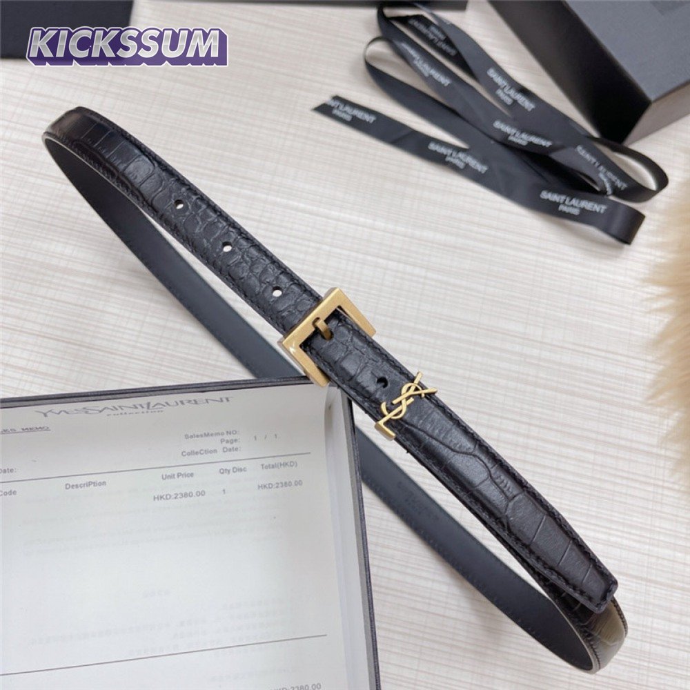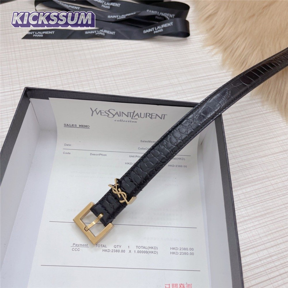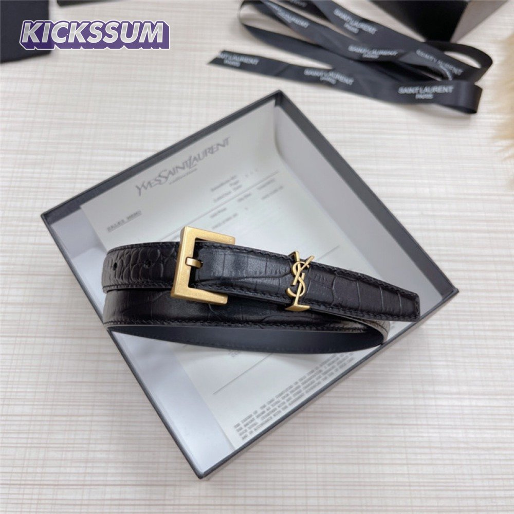 ysl crocodile grain top layer leather belt