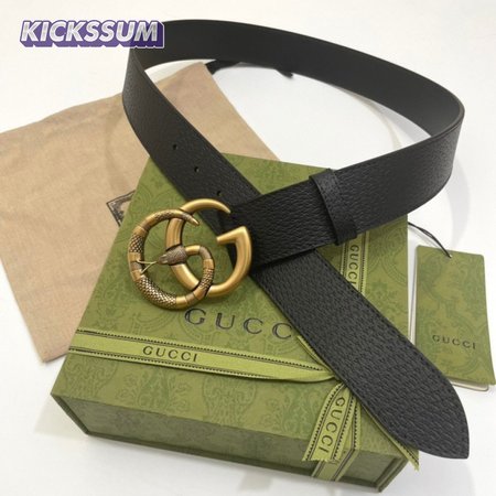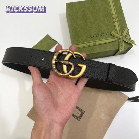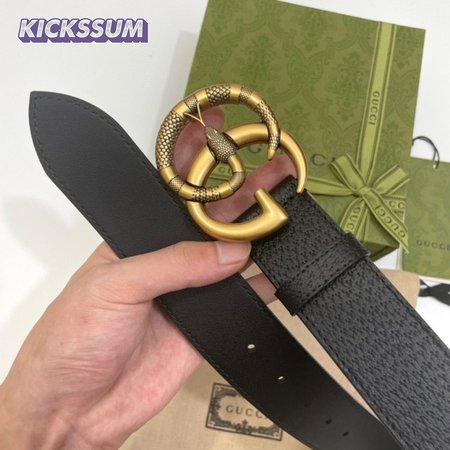 GUCCI LEATHER BELT WITH DOUBLE G BUCKLE WITH SNAKE