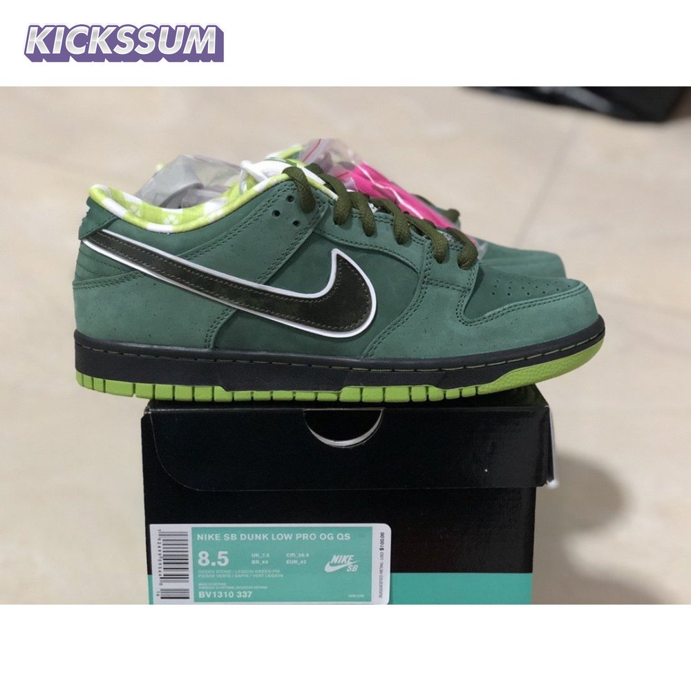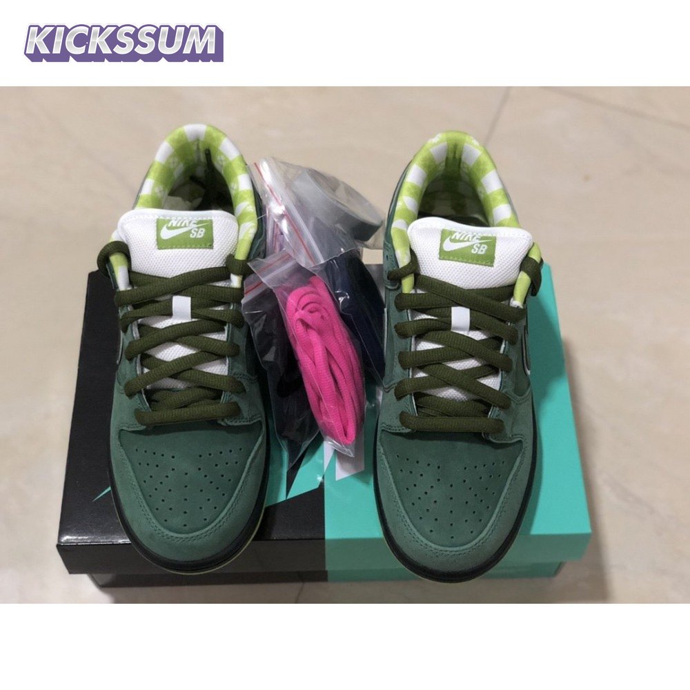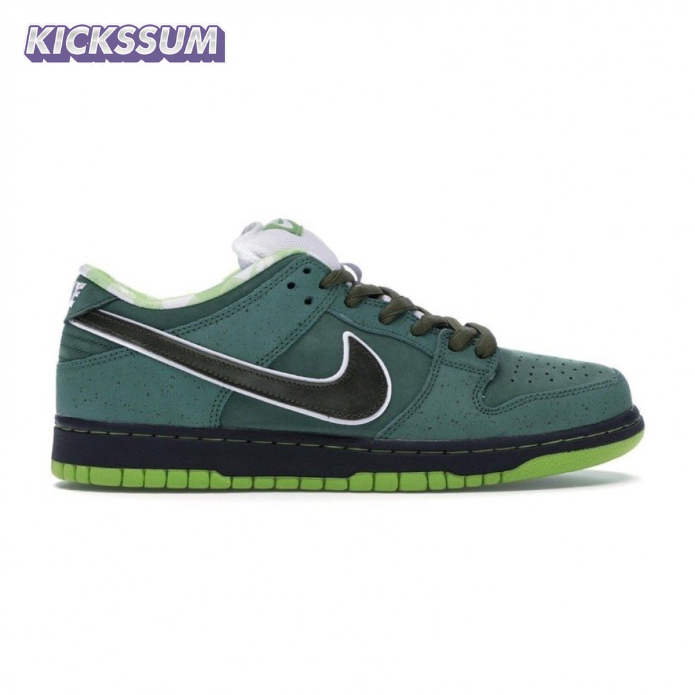 Nike teamed up with Boston-based Concepts to release an exclusive colorway that riffs off of the brand"s crustacean theme. The Concepts x Dunk Low SB 'Green Lobster' features a green colorway with a durabuck and suede upper in Green Stone, with a subtle speckle graphic. The low top also boasts a white padded tongue for comfort, patterns on the inner lining, and a Zoom Air insert in the sockliner for cushioning.