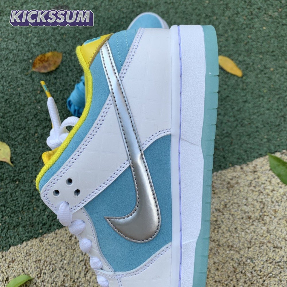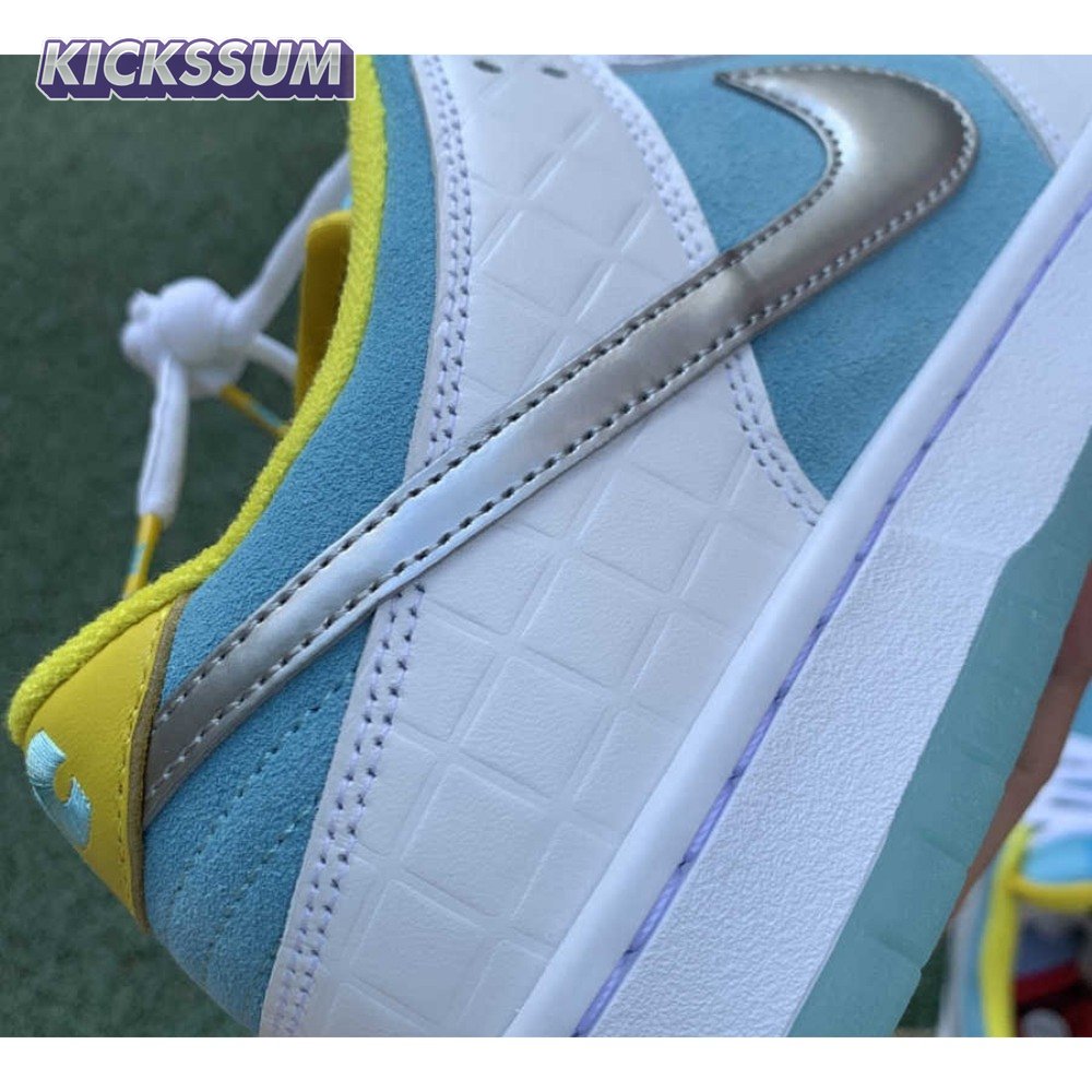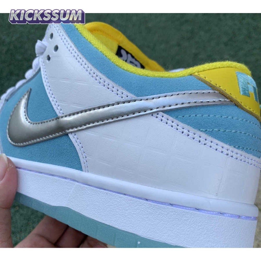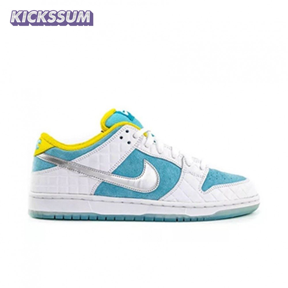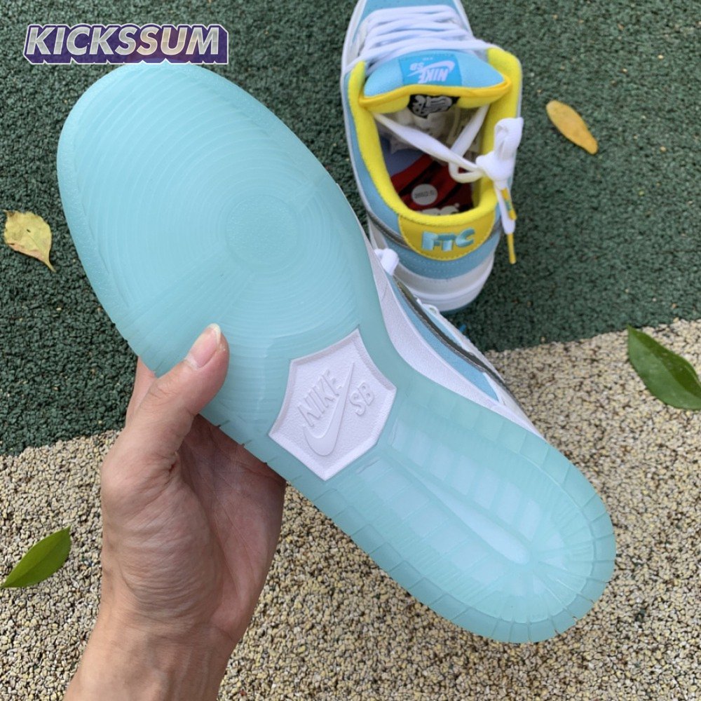 The FTC x Nike Dunk Low SB "Lagoon Pulse" is drawn from a collaborative series celebrating the 2021 Summer Olympics in Tokyo, where skateboarding makes its debut as an official Olympic sport. FTC, the San Francisco skate shop located in the city"s historic Haight district, dresses the low-top in light blue suede with white leather overlays in a brick-like texture inspired by Japanese bathhouses. A metallic silver Swoosh shines on the side panel, while "FTC" adorns the yellow leather heel tab in light blue embroidery. Underfoot, an icy translucent outsole provides durable traction.