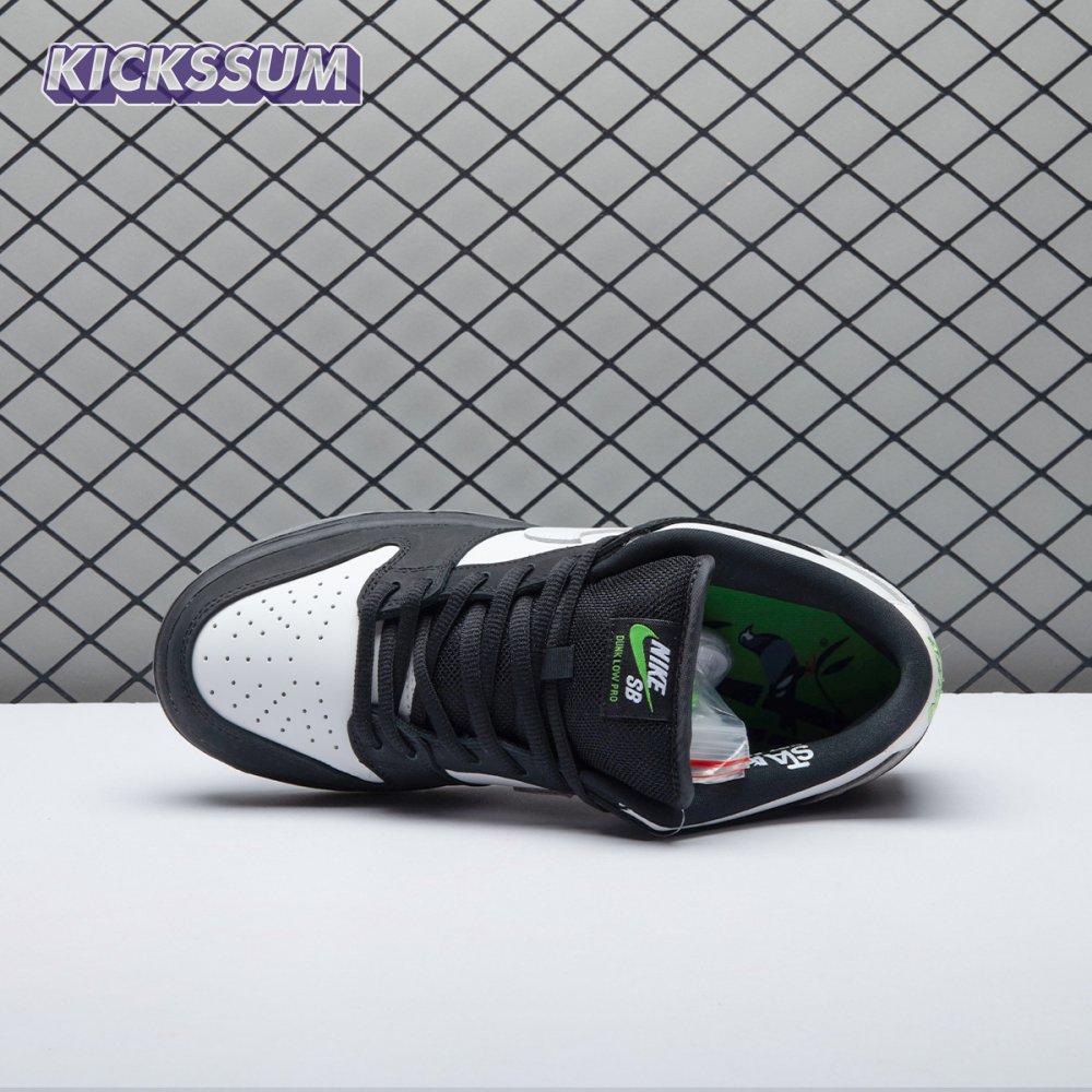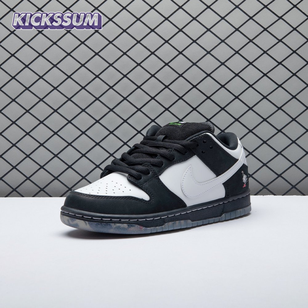Originally conceived as a sample colorway that was initially rejected, the Jeff Staple x Dunk Low Pro SB "Panda Pigeon" continues Staple"s long-running partnership with Nike SB. The design lives up to its name with a black and white color scheme on the leather and suede upper, complete with the all-important pigeon on the lateral heel. A translucent outsole reveals a collage made up of newspaper headlines alluding to the infamous Pigeon Dunk launch from 2005.