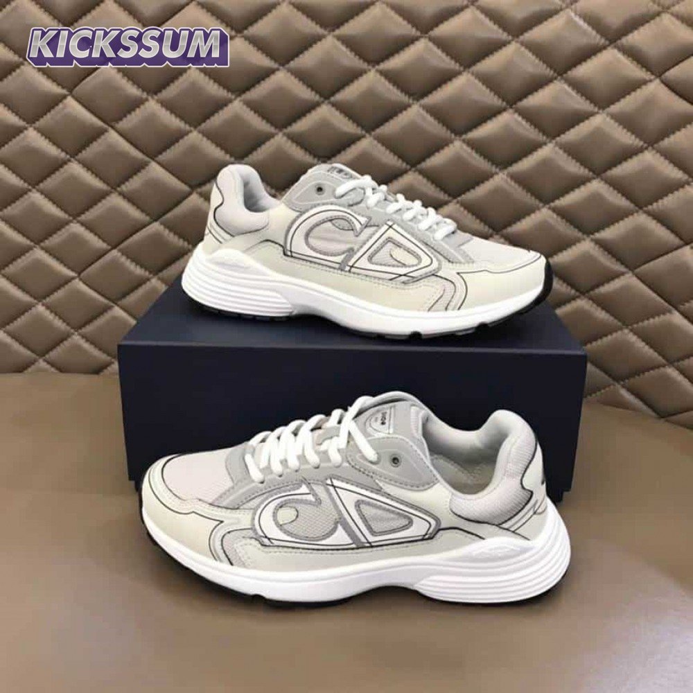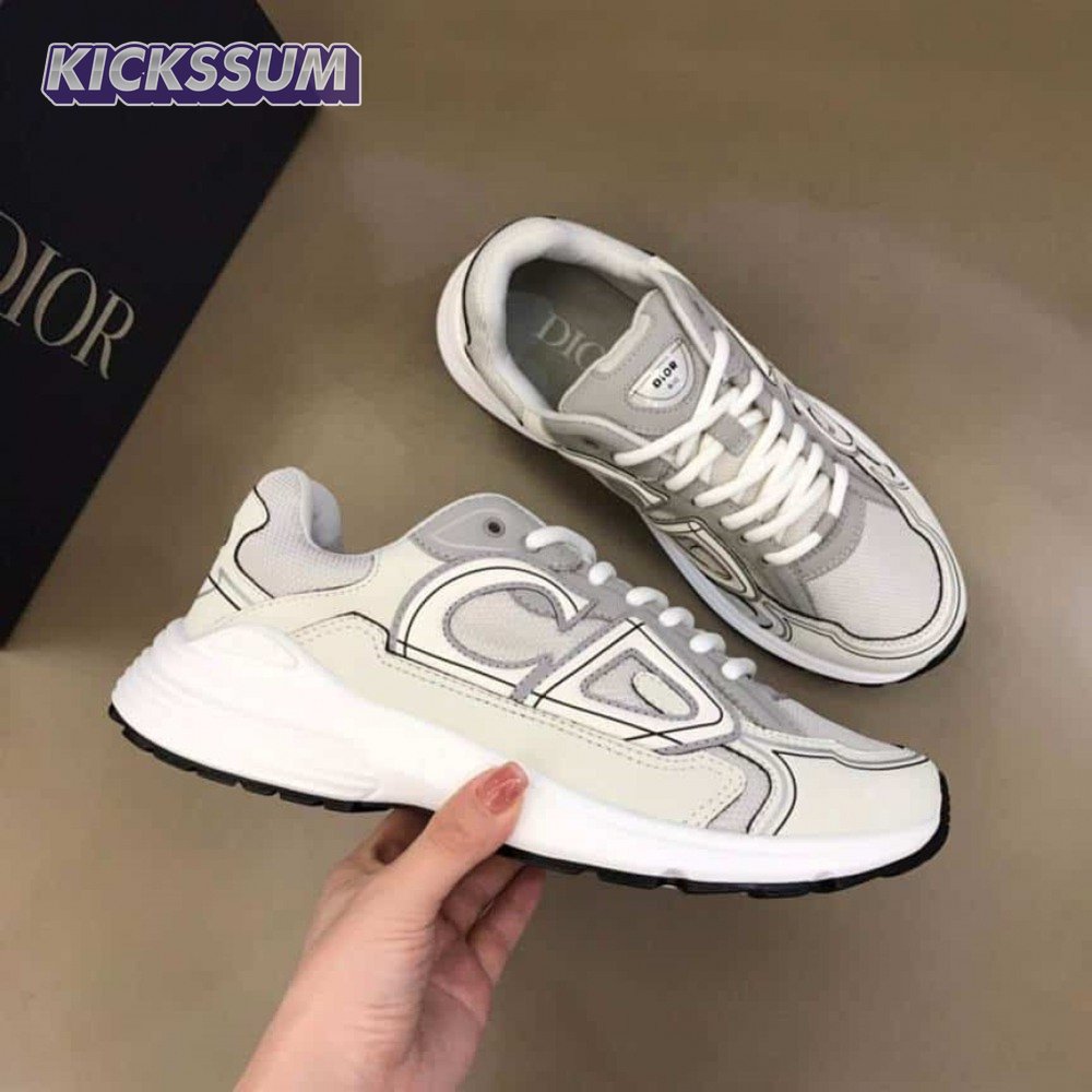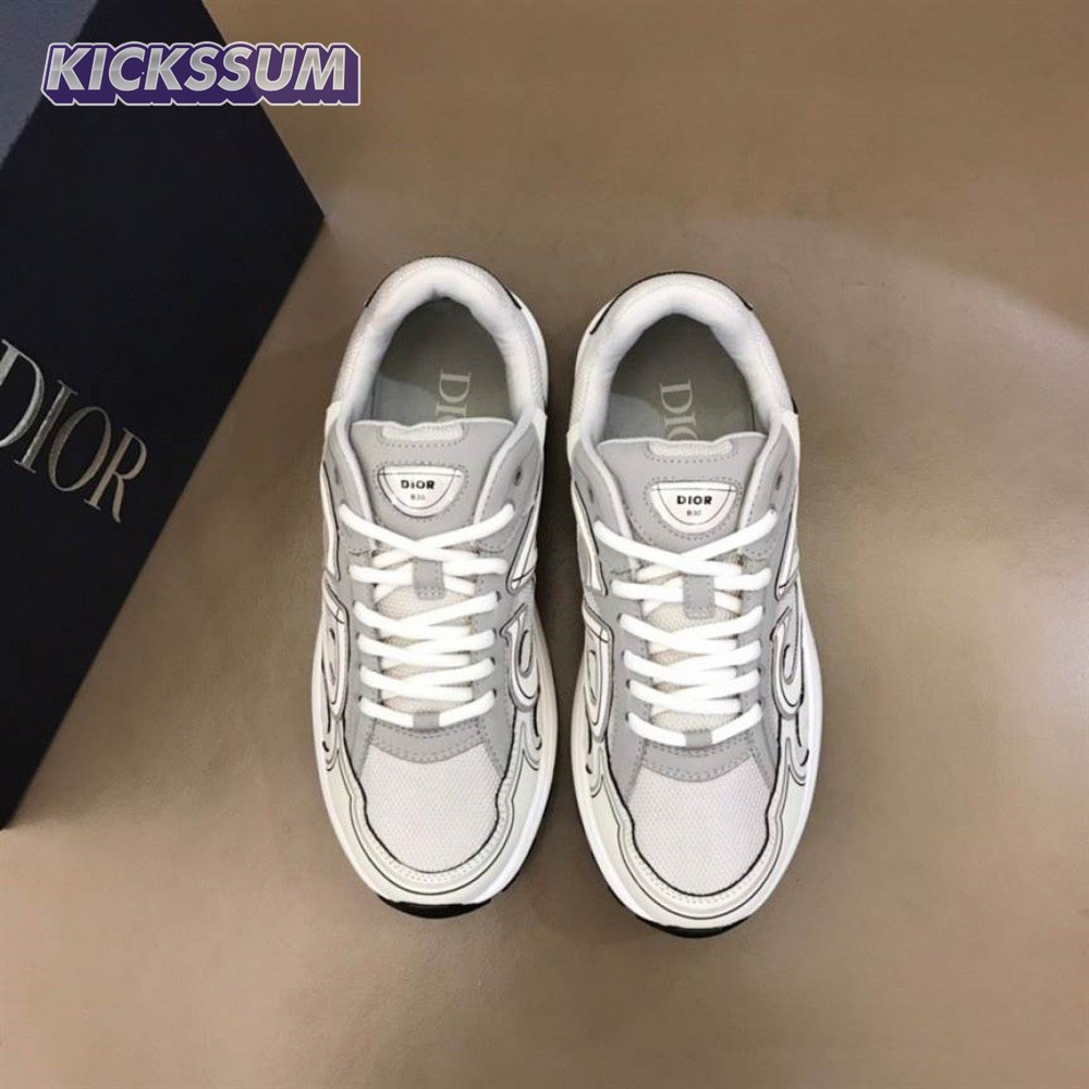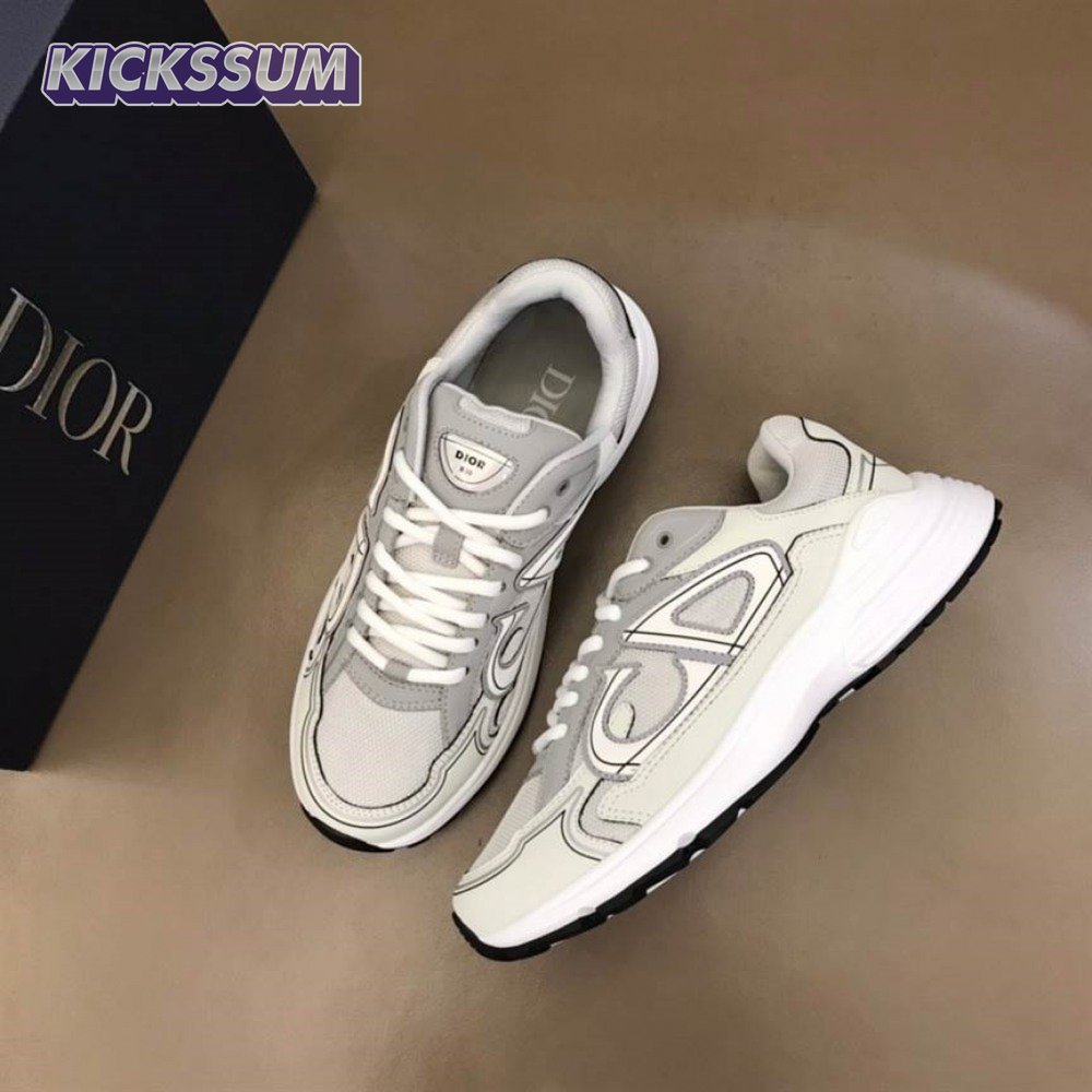 DIOR B30 SNEAKERS GRAY MESH AND WHITE TECHNICAL FABRIC - CD85