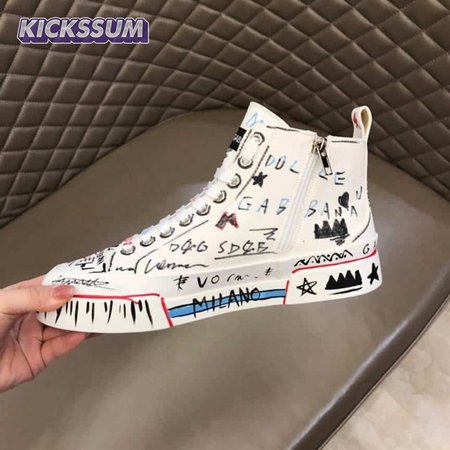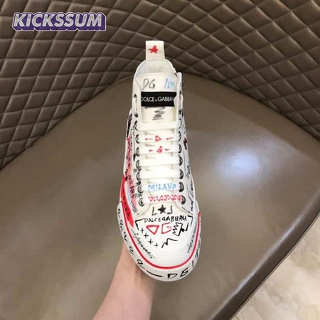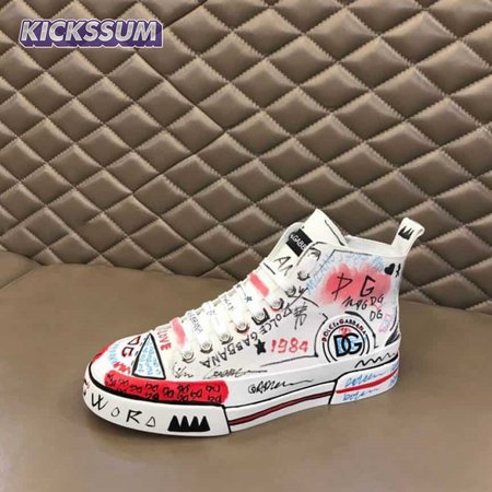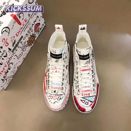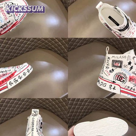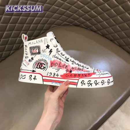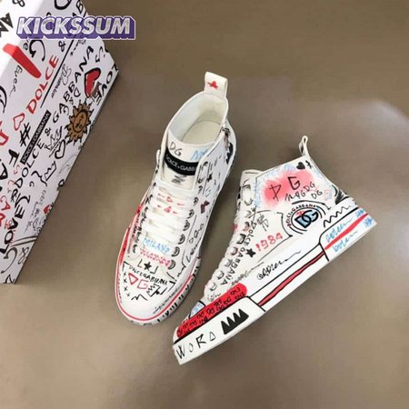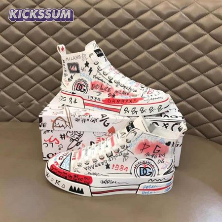 DOLCE AND GABBANA HAND-PAINTED GRAFFITI CANVAS PORTOFINO LIGHT MID-TOP SNEAKERS - DG111
