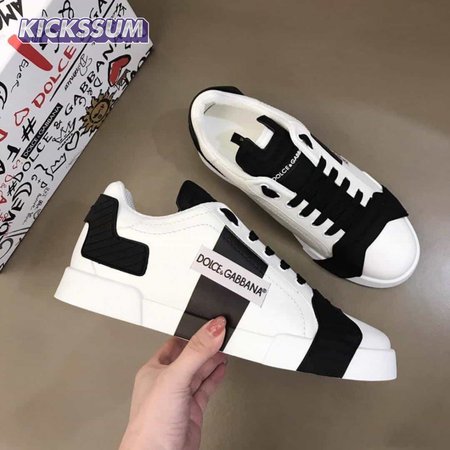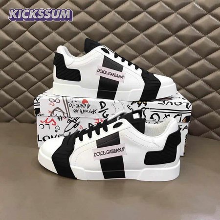 DOLCE & GABBANA CALFSKIN PORTOFINO SNEAKERS WITH PATCHES OF THE DESIGNERS - DG2