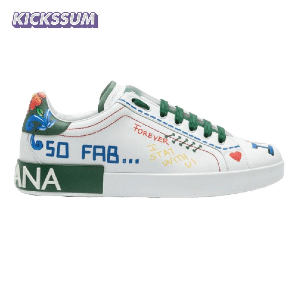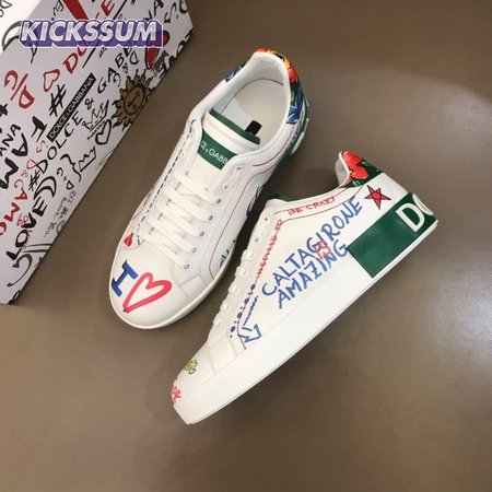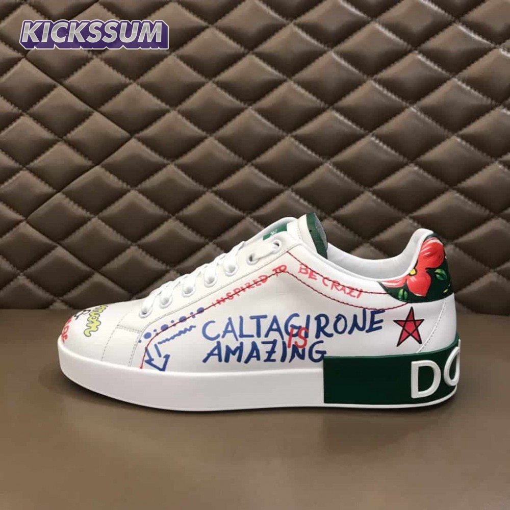 DOLCE & GABBANA PRINTED CALFSKIN PORTOFINO SNEAKERS - DG32
