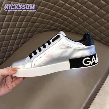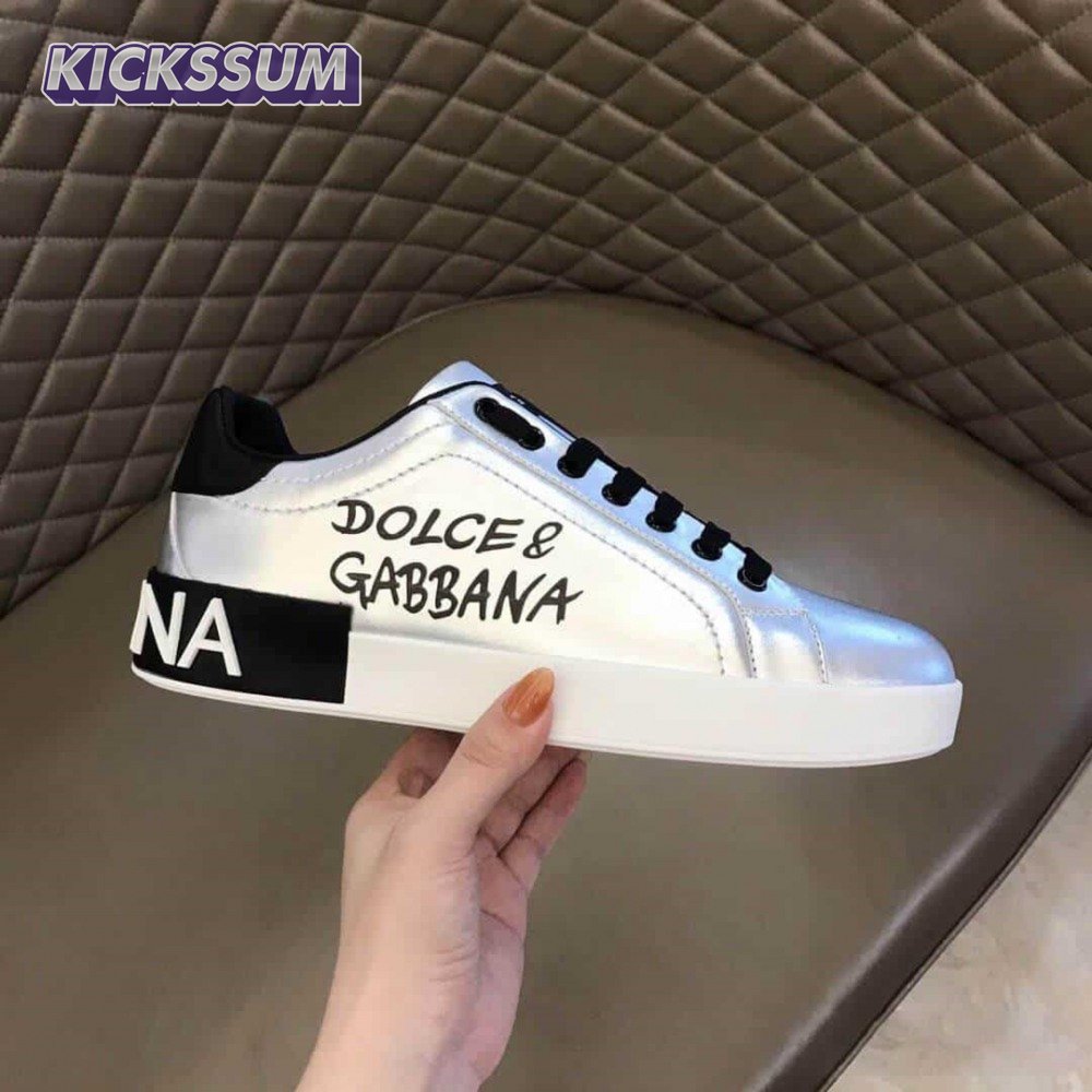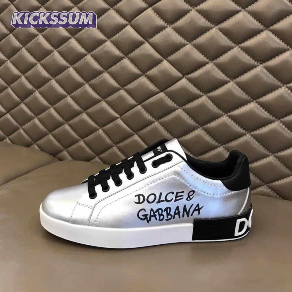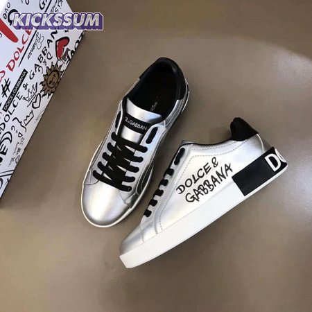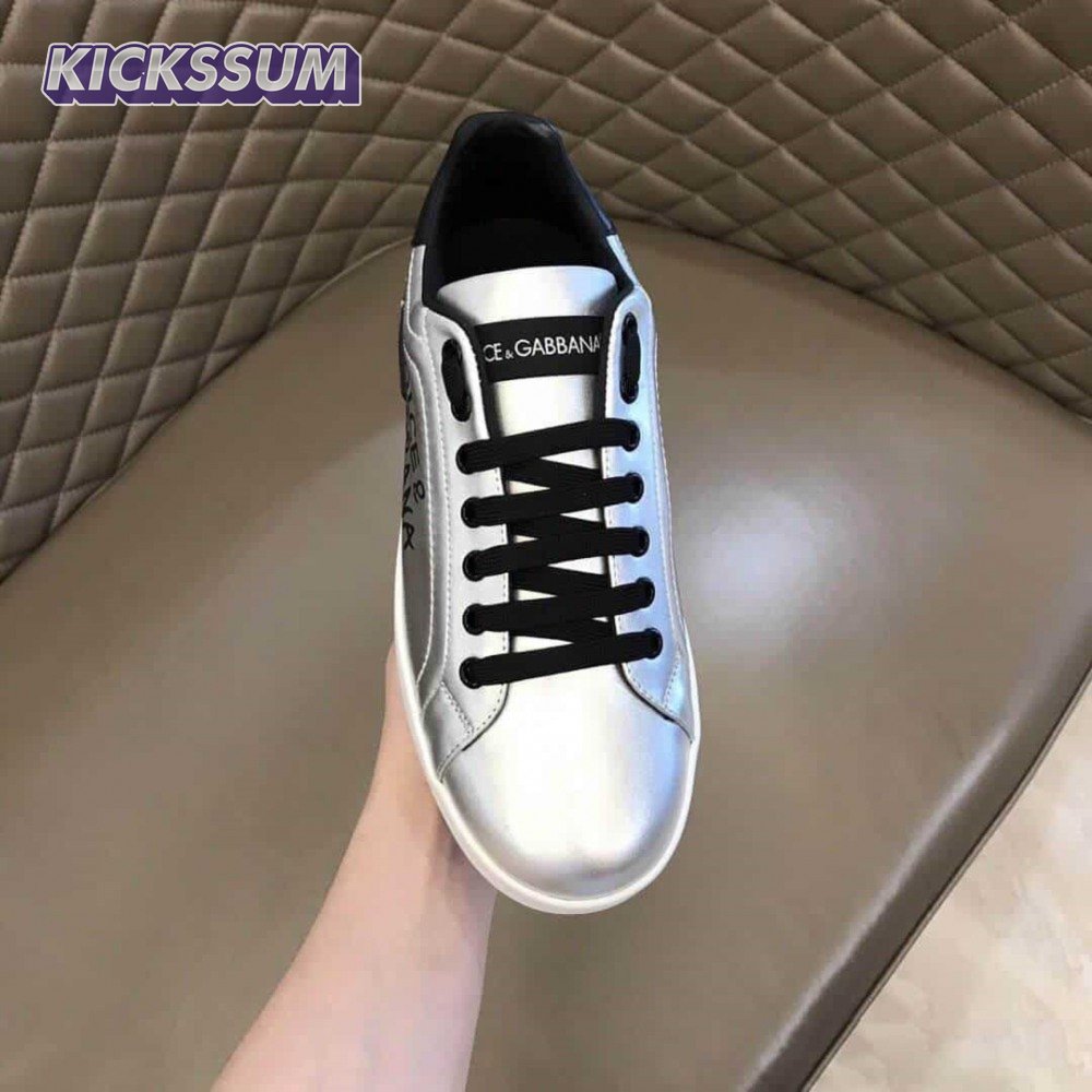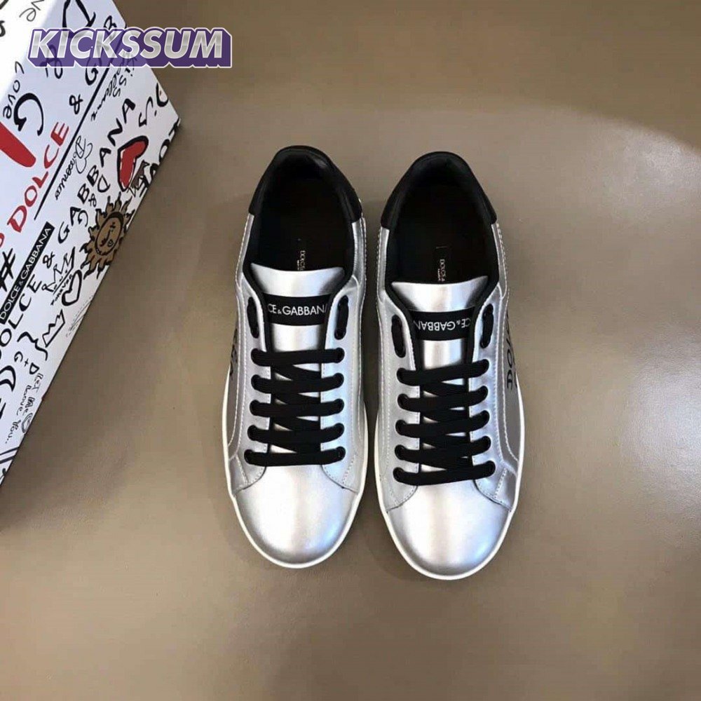 DOLCE AND GABBANA LOGO PRINT POSITANO LEATHER SNEAKERS - DG94