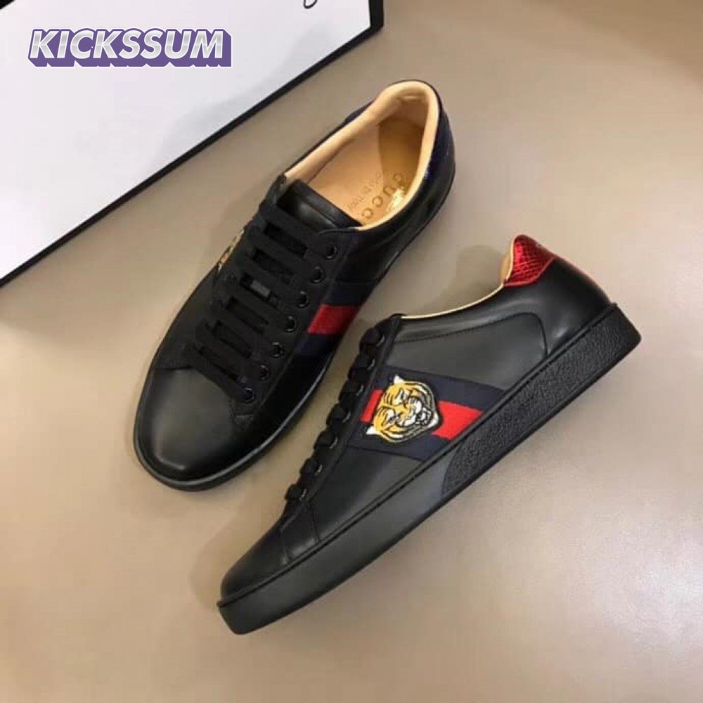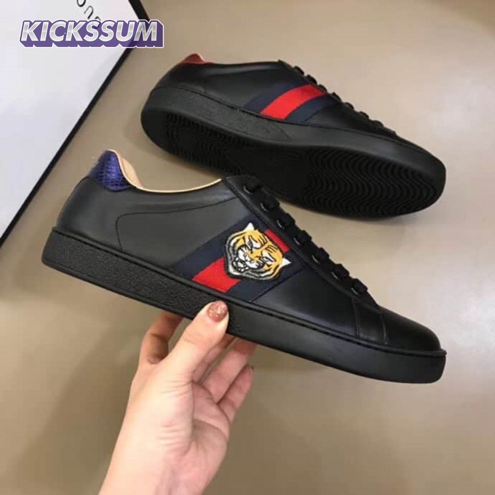 GUCCI TIGER ACE EMBROIDERED SNEAKER BLACK - GC49